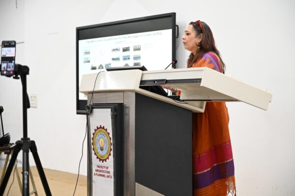 प्रो. वंदना सेहगल, प्रिंसिपल एवं डीन, एफओएपी, ए.के.टी.यू. ने लखनऊ के विरासत प्रीसिंक्ट्स: पहल और चुनौतियाँ पर प्रकाश डालते हुए कहा: “तेज़ी से हो रहे विकास के कारण लखनऊ के विरासत क्षेत्र दबाव में हैं।