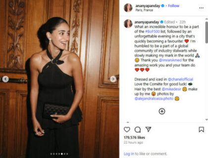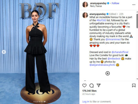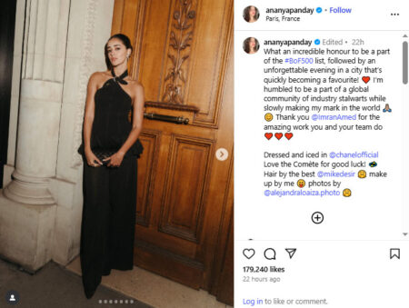 प्रतिष्ठित बिजनेस ऑफ फैशन की ग्लोबल लिस्ट में शामिल होने वाली अनन्या पांडे इकलौती भारतीय अदाकारा हैं। अनन्या ने इंस्टा पोस्ट को कैप्शन दिया, “बिजनेस ऑफ फैशन की सूची में शामिल होना मेरे लिए बहुत बड़ा सम्मान है।पेरिस जैसी खूबसूरत शाम और इस शहर में बिताए पल, जो अब मेरा पसंदीदा बन रहा है, मेरे लिए खास हैं।