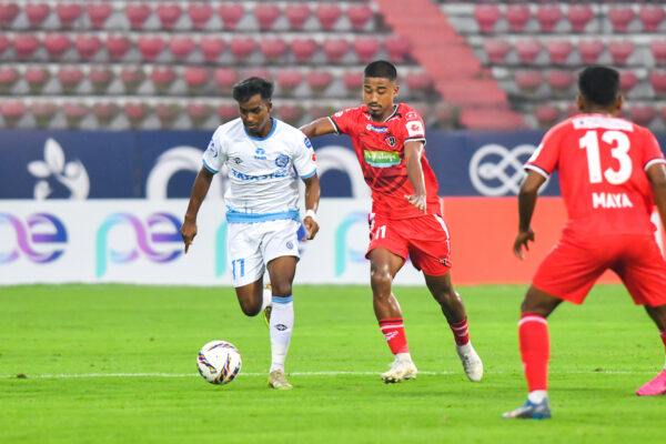 मुकाबले की शुरुआत तेज़ रही और शुरुआती मिनटों में दोनों टीमें गेंद पर कब्जे के लिए संघर्ष करती दिखीं, लेकिन अंतिम तीसरे हिस्से में कोई स्पष्ट मौका नहीं बन पाया। 13वें मिनट में जमशेदपुर के गोलकीपर अल्बिनो गोम्स ने बॉक्स के बाहर आकर शानदार क्लियरेंस करते हुए मेजबान टीम के संभावित हमले को रोक दिया।