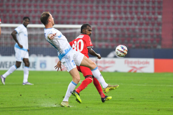 हाईलैंडर्स का आक्रमण धीरे-धीरे खतरनाक होता गया। 27वें मिनट में पार्थिब गोगोई ने एक तेज़ दौड़ लगाई, लेकिन सेंटर-बैक प्रतीक चौधरी ने उन्हें गिराकर उस मूव को रोक दिया।