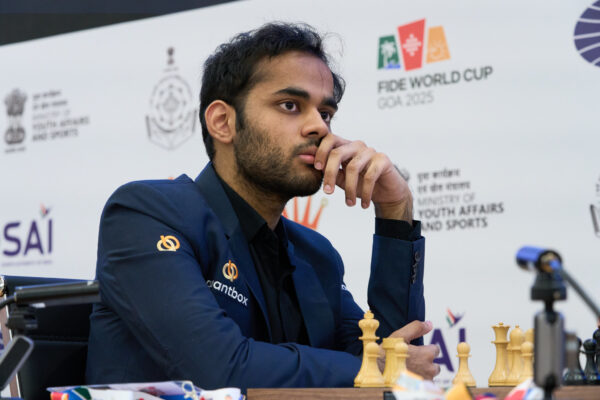 पणजी: यहाँ जारी फ़िडे विश्व कप 2025 के पाँचवें राउंड के पहले गेम में शुक्रवार को ग्रैंडमास्टर लेवोन अरोनियन के डिफेंस को भेदने की ग्रैंडमास्टर अर्जुन एरिगैसी की कोशिशें नाकाम रहीं, जबकि ग्रैंडमास्टर पी हरिकृष्णा ने ड्रा खेला।