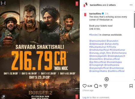 ये भी पढ़े : भारत और ओवरसीज़ में धमाल, ‘बॉर्डर 2’ बॉक्स ऑफिस पर छा गई