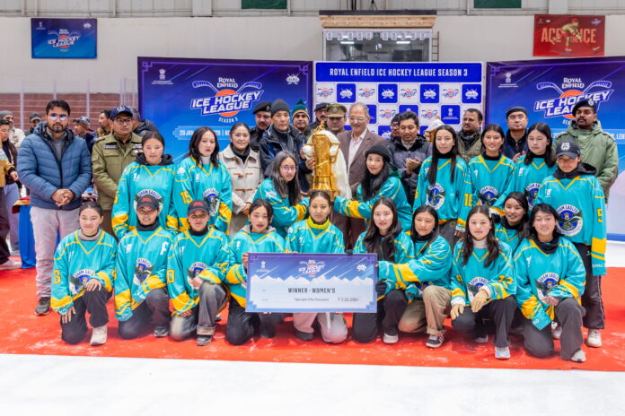 लेह : अंतिम पीरियड में मोहम्मद ईसा, गुलाम नबी तक और वसीम बिलाल के गोलों की बदौलत हुमास वॉरियर्स ने रॉयल एनफ़ील्ड आइस हॉकी लीग सीज़न 3 का पुरुष खिताब अपने नाम किया। लेह के नवांग दोरजे स्तोब्दान (NDS) स्टेडियम में खेले गए फ़ाइनल में हुमास वॉरियर्स ने प्यूरिग वॉरियर्स को 3–1 से हराया।