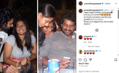 प्रभास के जन्मदिन पर उनकी बहन, प्रसीधा उप्पलपति ने इंस्टाग्राम पर एक पोस्ट साझा करके लिखा, ‘जन्मदिन मुबारक हो अन्नया। तुमसे बहुत प्यार करती हूं। हमारे अंदर खुद के लिए एक रक्षक और जीवन भर के मार्गदर्शक को देखती हूं। हमेशा तुम्‍हारी सबसे बड़ी फैन और सबसे जोरदार जयकार!!!’