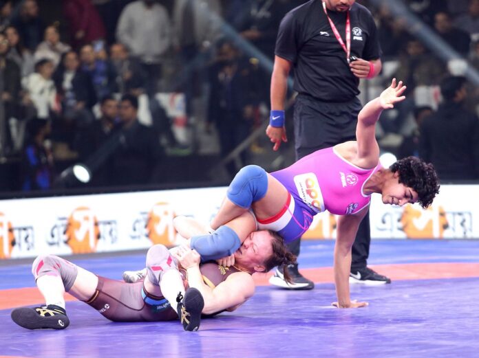 नोएडा : प्रो रेसलिंग लीग 2026 के मैच 11 में रविवार रात नोएडा इंडोर स्टेडियम में हरियाणा थंडर्स ने टाइगर्स ऑफ मुंबई दंगल्स के खिलाफ हरफनमौला और प्रभावशाली प्रदर्शन करते हुए मुकाबले  के हाफवेचरण में ही बड़ी बढ़त बना ली।