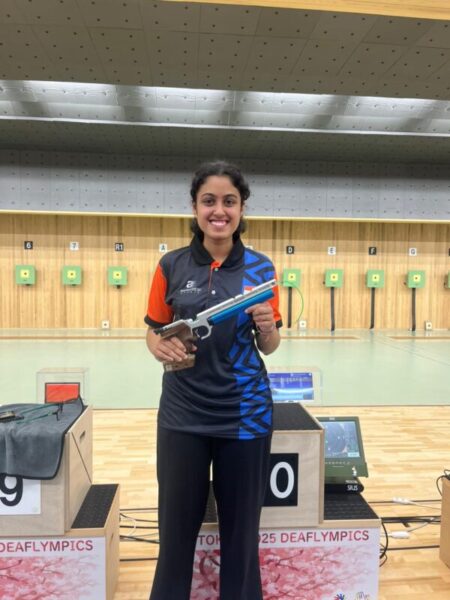 उन्होंने क्वालिफिकेशन में विश्व और डेफ वर्ल्ड रिकॉर्ड की बराबरी की और फ़ाइनल में बेहतरीन मुकाबला करते हुए पोडियम फिनिश सुनिश्चित किया। दो दिनों में भारतीय निशानेबाज़ी दल की कुल पदक संख्या अब सात हो गई है।