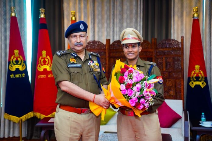आज दिनांक 14.11.2025 को पुलिस महानिदेशक, उत्तर प्रदेश राजीव कृष्ण द्वारा पुलिस मुख्यालय, गोमतीनगर विस्तार, लखनऊ में अंतर्राष्ट्रीय महिला क्रिकेटर एवं भारतीय महिला क्रिकेट टीम की सदस्य तथा स्पोर्ट्स कोटे में चयनित उत्तर प्रदेश पुलिस की अधिकारी, पुलिस उपाधीक्षक दीप्ति शर्मा को वरिष्ठ अधिकारियों की उपस्थिति में सम्मानित किया गया।