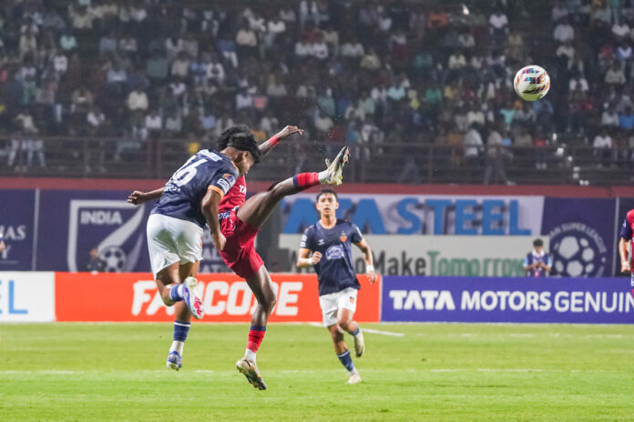 57वें मिनट में जमशेदपुर ने सेट-पीस से बढ़त बना ली। मदीह तलाल ने बॉक्स में शानदार कर्विंग फ्री-किक डाली, जिसे कप्तान स्टीफन एज़े ने जगह बनाते हुए अपनी जांघ से गोल में पहुंचा दिया और स्कोर 1-0 कर दिया।