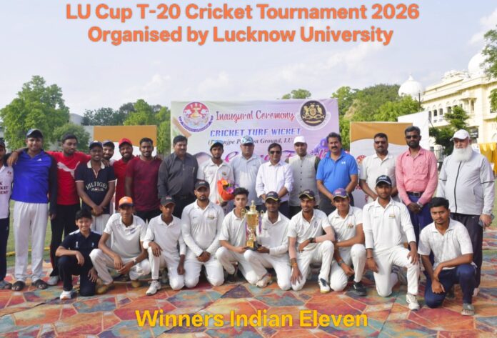 लखनऊ विश्वविद्यालय के परांजपे पवेलियन ग्राउंड में आयोजित ऐतिहासिक क्रिकेट टर्फ विकेट के उद्घाटन एवं एलयू कप क्रिकेट टूर्नामेंट-2026 का ग्रांड फिनाले सफलतापूर्वक पूरा हुआ। कार्यक्रम का आयोजन लखनऊ विश्वविद्यालय एथलेटिक एसोसिएशन के चेयरमैन प्रो. आरबी सिंह एवं जनरल सेक्रेटरी प्रो. अजय कुमार आर्या द्वारा किया गया।