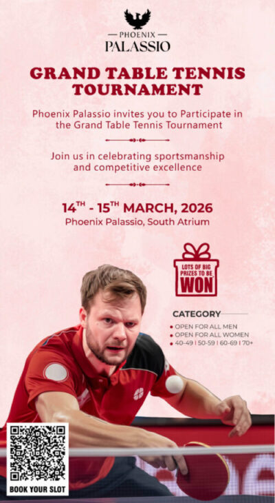 लखनऊ: फीनिक्स पलासियो ने लखनऊ जिला टेबल टेनिस एसोसिएशन के सहयोग से ग्रैंड टेबल टेनिस टूर्नामेंट की शुरूआत की, जो शहर भर के स्पोर्ट्स लवर्स और उभरते खिलाड़ियों को एक साथ ला रहा है।