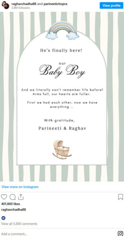 बीते दिनों ही उन्होंने इस बारे में जानकारी दी थी कि वह दो से तीन होने जा रही हैं। उनके घर नन्हा मेहमान आने वाला है। पोस्ट में राघव ने लिखा, ‘वो आखिरकार आ गया! हमारा प्यारा सा बेबी बॉय। और हमें पहले की जिंदगी याद ही नहीं! बाहें भरी हैं, दिल और भी भरे हैं।