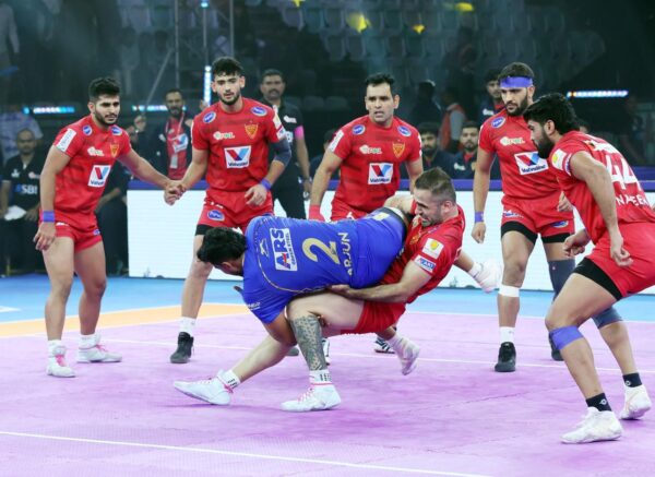 दिल्ली: दबंग दिल्ली के.सी. ने तमिल थलाइवाज की कड़ी चुनौती का सामना करते हुए शुक्रवार को त्यागराज इंडोर स्टेडियम में 37-31 से महत्वपूर्ण जीत हासिल की। अक्षित ढुल उस रात मुख्य रेडर रहे, जिन्होंने सब्सटीट्यूट के तौर पर आकर 12 अंक बनाए। अनुभवी फज़ल अत्राचली ने भी उनका अच्छा साथ दिया और हाई-5 बनाया।