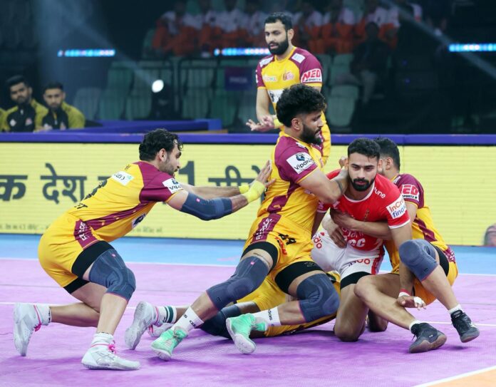 नई दिल्ली। तेलुगू टाइटंस ने त्यागराज इंडोर स्टेडियम में रविवार को खेले गए प्रो कबड्डी लीग (पीकेएल) के 12वें सीजन के 97वें मैच में गुजरात जाएंट्स को 30-25 के अंतर से हरा दिया।
