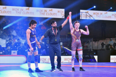 57 किग्रा महिला वर्ग में तपस्या गहलावत के जरिए यूपी डोमिनेटर्स ने जोरदार वापसी की। शुरुआती बराबरी के बाद तपस्या ने पावर मिनट में पूरा नियंत्रण हासिल करते हुए फेज़ 6 में दो निर्णायक टेकडाउन लगाए और 10–3 की शानदार जीत दर्ज कर अंतर कम किया।