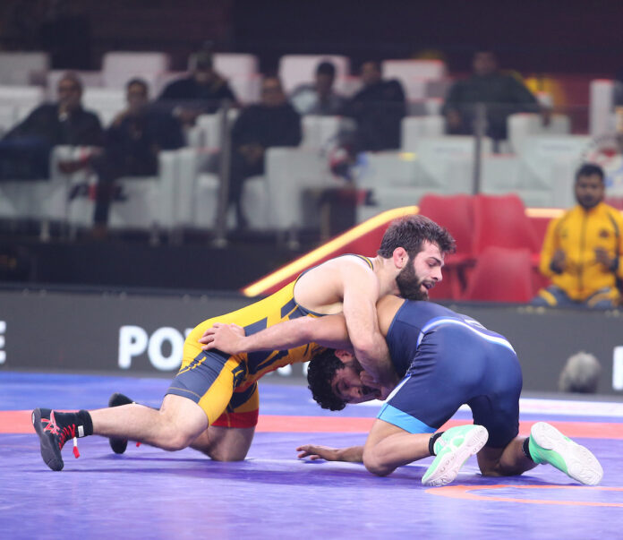 यूपी डोमिनेटर्स ने 86 किग्रा पुरुष वर्ग में बढ़त बनाई, जहां मिखाइलोववासिल ने अमित के खिलाफ प्रभावशाली प्रदर्शन करते हुए शुरुआती दबाव को झेलने के बाद लगातार टेकडाउन और टर्न-एंड-एक्सपोज़र मूव्स के जरिए 15–3 से जीत दर्ज की।