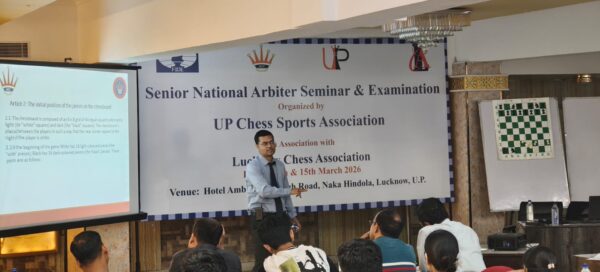 यूपी चेस स्पोर्ट्स एसोसिएशन एवं लखनऊ चेस एसोसिएशन के संयुक्त तत्वावधान में स्थानीय होटल अम्बर में 14 से 15 मार्च 2026 तक आयोजित दो दिवसीय सीनियर नेशनल आर्बिटर सेमिनार का शनिवार को विधिवत शुभारंभ हुआ। सेमिनार की शुरुआत सुबह 9:30 बजे निर्धारित समय पर हुई।
