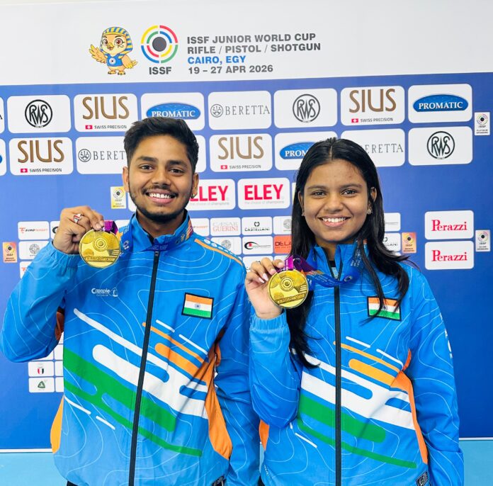 नई दिल्ली : भारत की 10 मीटर एयर राइफल मिक्स्ड टीम जोड़ी शांभवी क्षीरसागर और दिव्यांशु देवांगन ने 499.9 के जूनियर विश्व रिकॉर्ड स्कोर के साथ स्वर्ण पदक जीतकर आईएसएसएफ जूनियर वर्ल्ड कप में भारत को चौथा स्वर्ण दिलाया।