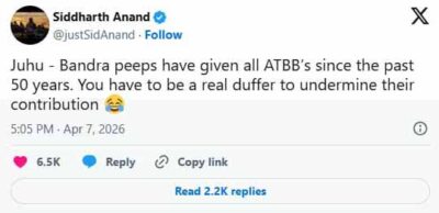 उन्होंने बोला, “जुहू-बांद्रा के लोगों ने पिछले 50 सालों में सभी ऑल टाइम ब्लॉकबस्टर फिल्में दी हैं. उनके योगदान को कम आंकने के लिए आपको डफर होना पड़ेगा.” अब अपने पोस्ट में सिद्धार्थ ने किसी का नाम तो नहीं लिया है, सोशल मीडिया पर लोग इसे जाकिर के बयान से जोड़ रहे हैं और बोला जा रहा है कि ये पोस्ट जाकिर के लिए ही है.