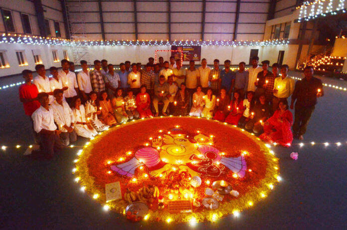फिर हैंडबॉल खिलाड़ियों ने राष्ट्रीय हैंडबॉल कोच मो.तौहीद की अगुवाई में आकर्षक रंगोली, पारंपरिक दीयों और मोमबत्तियों से कोर्ट को सजाकर खेल और संस्कृति का अद्भुत संगम पेश किया और दीप प्रज्वलन के साथ ही टीम स्पिरिट व एकता का संदेश दिया।