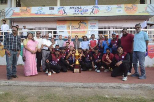 लखनऊ। मैन ऑफ द मैच देवेश पाण्डेय (44) एवं अब्बास रिजवी (36) की शानदार बल्लेबाजी के बाद धारदार गेंदबाजी की बदौलत टाइम्स ऑफ इंडिया ने इकाना मीडिया टी-20 कप-2025 क्रिकेट टूर्नामेंट के रोमांचक फाइनल में डीडी-एआईआर एकादश को 26 रन से हराया।