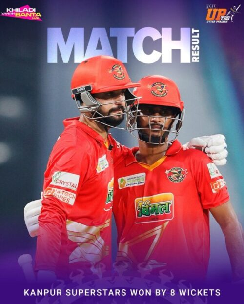 16वें ओवर की पहली ही गेंद पर जब रिज़वी ने छक्का जड़कर लक्ष्य हासिल किया तो कानपुर सुपरस्टार्स का स्कोरबोर्ड 15.4 ओवर में 163/2 पर पहुँच चुका था। इस जीत के साथ कानपुर ने लगातार तीसरा मैच जीतकर अंकतालिका में अपनी स्थिति और मज़बूत कर ली है।