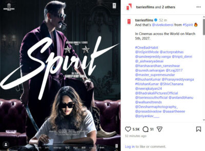 ये भी पढ़े : टी- सीरीज का ऐलान, प्रभास- तृप्ति की ‘स्पिरिट’ 5 मार्च 2027 को सिनेमाघरों में