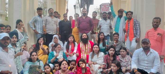 लखनऊ। पहलगाम में हुये आतंकी हमले के विरोध में योगी सेना भारत ने आज ओ.सी.आर. विधायक निवास बर्लिंगटन चौराहा से विधानसभा मार्ग होते हुए जीपीओ पार्क हजरतगंज तक शांति मार्च एवम मशाल जुलूस निकाला। इसके साथ ही गांधी प्रतिमा पर आतंकी हमले के मृतक पर्यटकों को श्रद्धांजलि दी गयी और पाकिस्तान का पुतला फूका।